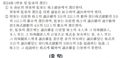 주총 특별결의는 보통 정관변경이나 경영위임, 영업양수, 이사해임 등 중요한 사안에만 해당된다. 대한항공은 왜 이사선임을 어렵게 만들었을까.