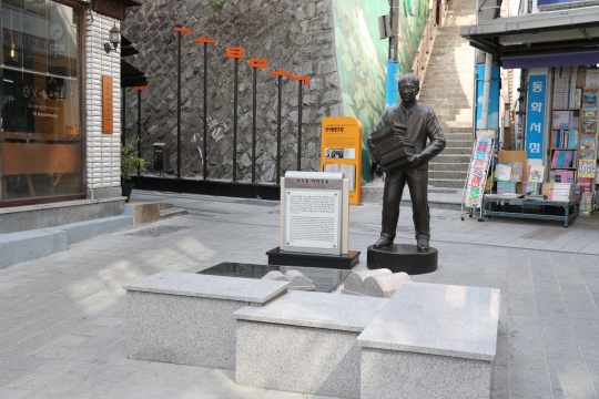 부산 중구청은 환경디자인개선사업에서 관광객이 쉬어갈 수 있는 쉼터를 만들고 조형물 설치와 돌계단 복원 작업을 진행했다.(사진=중구청)