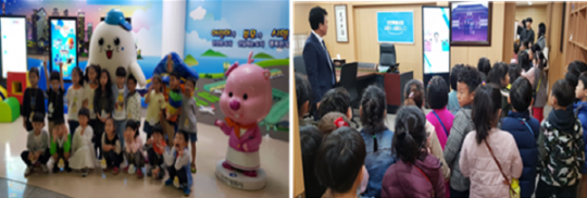중앙홀에서 단체사진 기념 촬영(좌)과 시장실 견학 및 기념 촬영 모습 (사진/인천시)