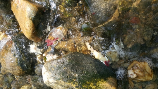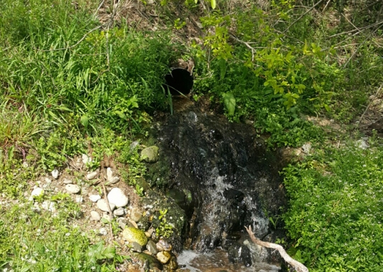 하수관 아랫돌에 시커먼 이끼가 잔뜩 끼여 있다.