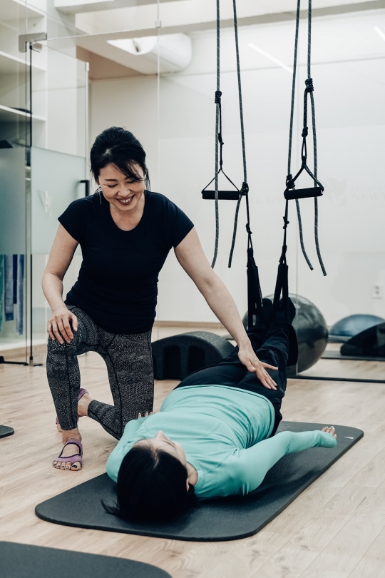 룰루레몬 이영아 앰버서더(강사)의 필라테스 강의 진행 모습/롯데백화점