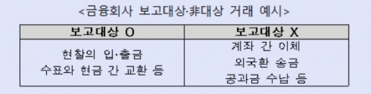 금융회사 보고대상·非대상 거래 예시/금융위원회