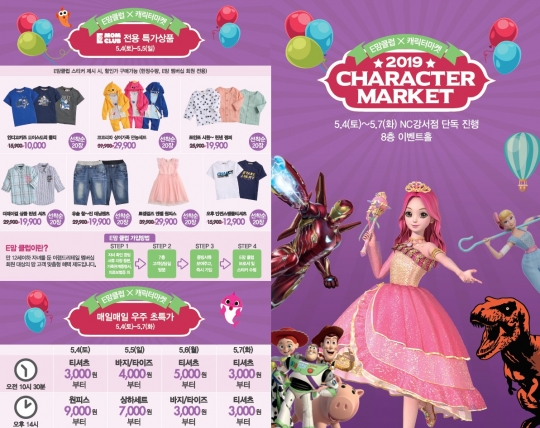 이랜드리테일이 운영하는 NC 강서점은 어린이날을 맞이해 최근 인기를 끌고 있는 캐릭터들을 한자리에 모아 '2019 캐릭터 마켓'을 진행한다.