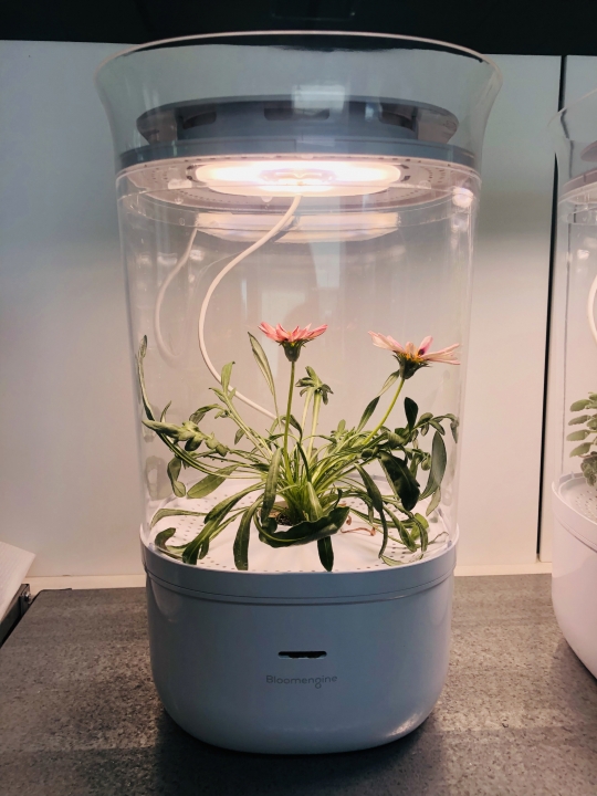 블룸엔진의 스마트화분은 기존 화분처럼 분재나 나무를 그대로 사와 키우기보다 씨앗부터 식물을 키우고 싶은 이들에게 적합하다. 스마트화분과 연결된 앱을 통해 빛, 물, 바람의 양을 자유롭게 조절해 씨앗의 발아와 식물의 생육을 돕는다. 스마트화분에서 예쁘게 핀 꽃은 조명을 받아 인테리어 소품으로도 활용할 수 있다. 가자니아, 일일초, 엑사쿰, 허브류 등 작지만 관상용으로 놓기 좋은 식물이 블룸엔진의 스마트화분에 들어간다. 꽃을 피우는(블룸·Bloom) 데에 도움을 주는 기계(엔진·engine)를 만들고 싶어 '블룸엔진'을 회사명으로 정했다.