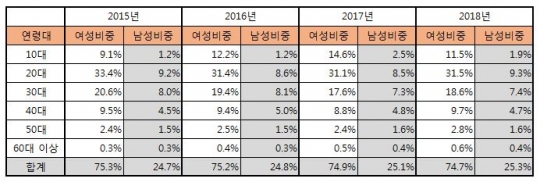 ◆20대 여성이 31.5%로 가장 많은 비중 차지