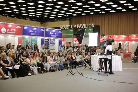 지난 23일(목)부터 이틀간 러시아 모스크바에서 진행된 '대한민국 브랜드 엑스포 in 모스크바' 한국상품 수출 상담회에서 유명 메이크업 아티스트가 참여 중소기업 상품을 활용한 메이크업 시연회를 진행했다. /롯데홈쇼핑