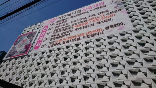 각 층을 안내하는 현수막에도 '의원'이라는 정체성의 실마리가 전혀 없다