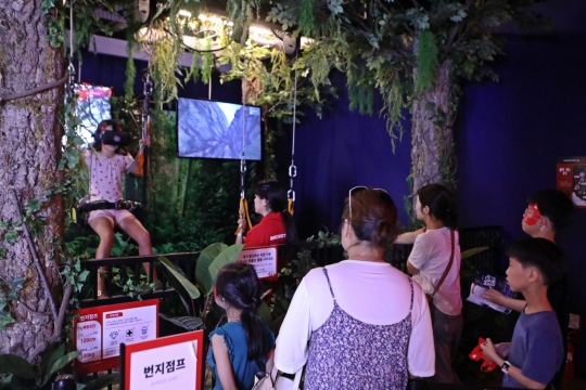 시원한 실내에서 친구, 연인, 가족과 함께 다양한 게임을 즐길 수 있는 건대 스타시티점의 '몬스터VR(Virtual Reality, 가상현실)'도 지난 한달간 약 2700명이 방문하며 인기를 끌었다. 특히 새로운 문화에 관심이 많은 2030 세대가 '몬스터VR'을 방문한 고객의 약 40%를 차지한다는 점에서 이전에는 백화점에서 찾아보기 힘들었던 신규 콘텐츠에 고객들이 큰 매력을 느끼고 있음을 확인할 수 있다.