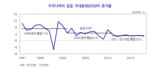 문제는 앞으로다. 한국 경제가 3%의 성장률을 훌쩍 넘어 재도약할 가능성보다는 2%대 중반까지 떨어진 상황에서 자칫 1%대 추락도 안심할 수 없는 상황이 됐기 때문이다.
