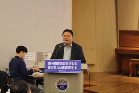 누리과정 안정화및 유아교육지원특별회계법 개정을 위한 토론회에 참석한 김근진육아정책연구소 부연구위원의 발제로 열띤 토론회가 진행되고 있다/사진 한국어린이집총연합회 제공
