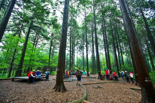 또 곳곳에 나무데크길이 설치되어있어 걷는 재미도 느낄 수 있다. 테마별로 조성되어있는 하늘숲길, 건강숲길, 산소숲길, 맨발숲길 등을 걷다보면 시원한 산바람과 맑은 하늘, 기분 좋은 새소리에 여름 더위와 일상의 스트레스가 모두 지워진다.