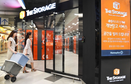 31일 고양시 장항동 홈플러스 일산점에서 모델들이 '더 스토리지' 서비스를 이용하고 있다. /홈플러스