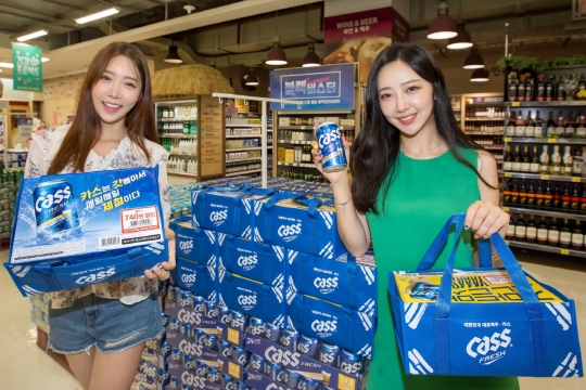 국산 맥주 판매 장려를 위해 기획된 이번 패키지는 카스 캔맥주(355ml) 12개를 파란색 바탕에 태극 무늬가 프린트된 파우치에 담아 판매한다.