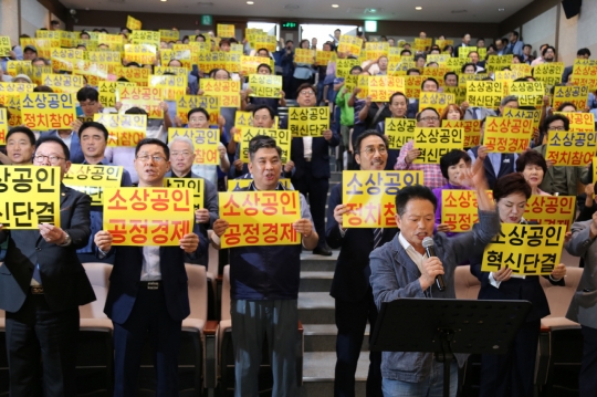 그러면서 "국회는 자신들의 권력만 나눠먹고 있을 뿐 소상공인기본법 뿐만 아니라 유통산업발전법 개정 등도 외면하고 있다"면서 "생존, 민생을 위해 소상공인들의 결집이 필요하다"고 덧붙였다.