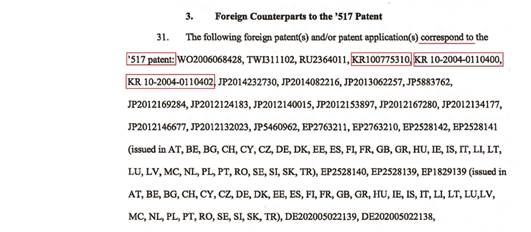 이 KR310 특허는 지난 2011년 LG화학이 SK이노베이션을 상대로 특허침해 소를 제기한 이후 관련 소송에서 연이어 패하자, 2014년 10월 합의에 이르기까지 양사 간 소송의 쟁점이 된 특허다. LG화학이 제출한 소장에도 '한국 특허 KR310은 미국 특허 US517에 일치한다(Correspond to)'고 명시되어 있다.