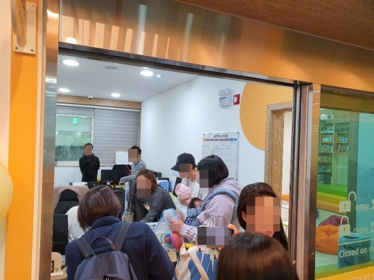 24일, 삼척 중앙시장 2층에 위치한 SOS통통센터에 방문한 젊은 주부고객들/메트로신문