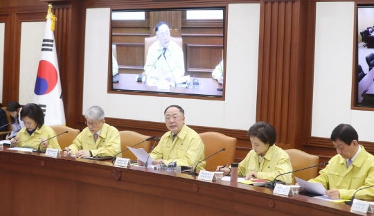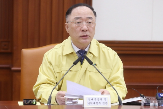 홍남기 경제부총리 겸 기획재정부 장관이 12일 서울 정부청사에서 열린 제5차 신종 CV 대응 경제관계장관회의 겸 제 4차 경제활력대책회의에 참석해 모두발언하고 있다. / 손진영기자 son@