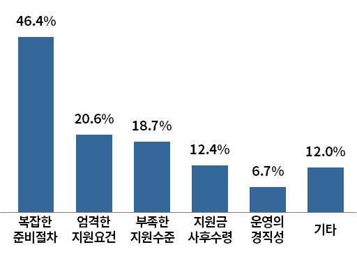 특히 고용유지지원금 제도 확대를 위한 정부 노력에도 불구하고 소상공인은 해당 제도의 복잡한 준비 절차와 엄격한 요건 등으로 신청에 어려움을 겪는 것으로 조사됐다. 소상공인들에게 복잡한 서류와 절차는 지원금 신청의 최대 걸림돌이다. 소상공인들 대부분이 영세해 서류 준비할 여력도 부족하고 조언을 받기도 어렵다.