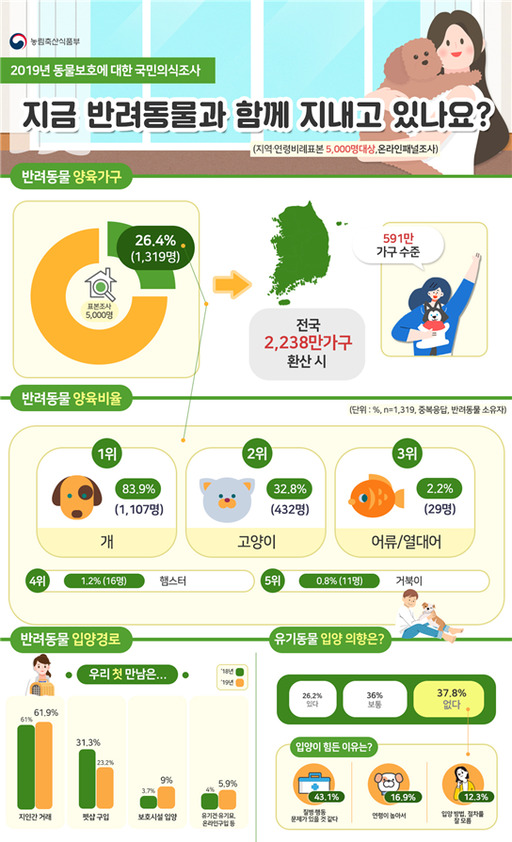 농식품부, '2019년 동물보호에 대한 국민의식 조사' 결과