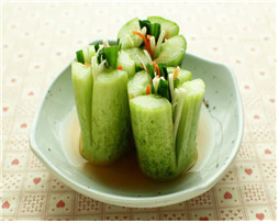 '오이과일채말이'는 얇게 썬 오이에 파프리카, 버섯, 배, 어린잎채소 등을 넣어 돌돌 만 후 물?식초?설탕?소금을 넣은 단촛물을 곁들여 낸다. '오이인삼소박이'는 절인 오이에 열십자로 칼집을 내고 무와 인삼과 미나리, 실파 등의 소를 채운 후 밀가루를 엷게 푼 물을 끓여 식힌 후 붓는다.