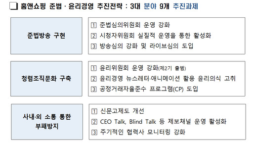 17일 관련업계에 따르면 홈앤쇼핑은 최근 준법·윤리경영을 위한 3대 분야, 9개 추진과제를 통해 '제2의 도약'을 선언했다.