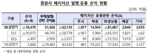 금감원 관계자는 "코로나19로 주요증시 등 기초자산이 급락하면서 전체 상환액 중 손실 상환액 비중이 증가해 투자수익률이 낮아졌다"고 분석했다. 증권사의 파생결합증권 발행·운용 손실은 1조원으로 대규모 적자로 돌아섰다. 코로나19로 글로벌 주요 증시의 불확실성이 커지면서 증권사들이 헤지자산 거래(trading)에 어려움을 겪은 것으로 추정됐다.