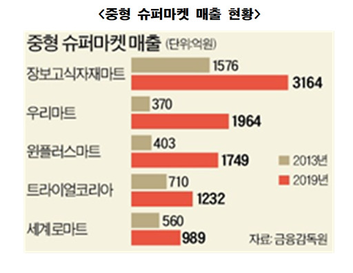 우리마트도 2013년 370억원이던 매출이 지난해엔 1964억원까지 증가했다.