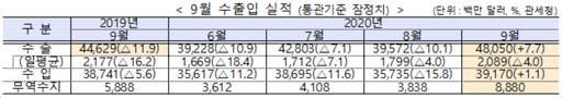 9월 수출 480억달러, 7.7% 증가