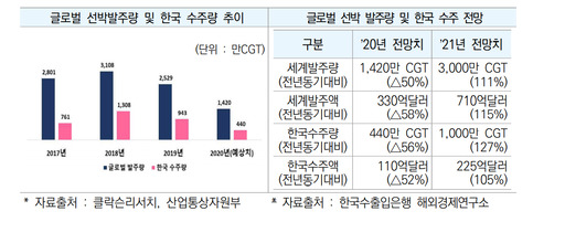 가뜩이나 중국 등의 경쟁에 밀려 고전하고 있는 가운데 코로나19와 유가하락으로 발주량이 더 감소한 조선업이 대표적이다.