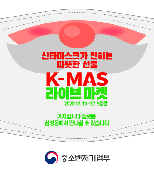 박영선 중기부 장관은 "산타마스크가 전하는 따뜻한 선물 '2020 K-MAS 라이브마켓'을 통해 소상공인을 위한 비대면·온라인 소비촉진에 동행하는 가운데, 국민모두 산타가 돼 위로와 희망의 온기를 함께 나누는 대한민국만의 특별한 크리스마스 마켓 모델을 만들겠다"고 전했다.