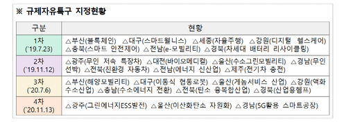 규제샌드박스가 집중돼 국가 균형발전을 촉진하는 규제자유특구의 경우 2019년 7월부터 지난해 11월까지 네차례에 걸쳐 총 24개 규제자유특구가 지정됐다.