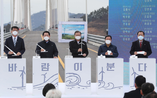 문재인 대통령은 5일 전남 신안군 일대에 조성하는 해상풍력발전단지에 대해 "정부는 2030년까지 5대 해상풍력 강국으로 도약한다는 목표하에 필요한 지원을 아끼지 않겠다. 착공까지 5년 이상 소요되는 사업 준비 기간을 단축하고, 특별법을 제정해 입지 발굴부터 인허가까지 일괄 지원하겠다"고 밝혔다.