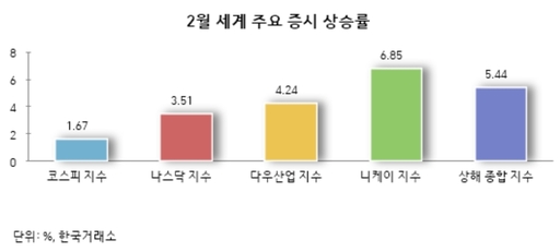 이달 들어 지난 19일까지 세계 주요 증시들의 상승률을 비교해보면 코스피 지수는 1.67% 상승했다. 반면 미국 나스닥 지수(3.51%), 다우산업 지수(4.24%), 일본 니케이 지수(6.85%), 중국 상하이종합지수(5.44%) 등은 코스피지수 상승률을 웃돌았다.