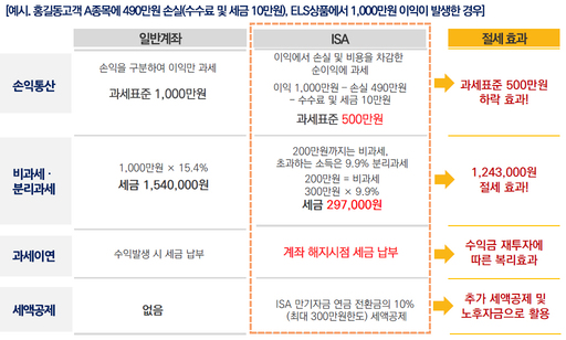 중개형 ISA에서 개별 종목을 거래하면 주가 상승시 수익과 함께 세제혜택을 동시에 누릴 수 있다. 만약 주가가 하락해 손실이 발생해도 손실금액을 다른 상품의 이익에서 차감하는 손익통산이 적용되기 때문에 일반 주식계좌와 비교시 절세관점에서 유리하다.