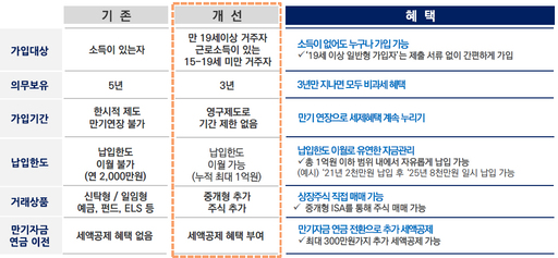 ISA는 2016년 3월 정부가 국민재산 늘리기 프로젝트 일환으로 도입한 정책금융상품이지만 가입자 제한, 긴 의무보유기간 등의 제한으로 인기를 얻지 못했다. 하지만 이번 2021년 세제개편을 통해 절세계좌로서의 활용 매력이 커졌다.