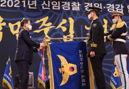 이어 "선배 경찰들은 '민주경찰, 인권경찰, 민생경찰'을 향해 부단히 노력하고 헌신했다. 그 헌신 위에서 우리는 올해 경찰 개혁 원년을 선포했고, 여러분은 '개혁 경찰 1기'의 자랑스러운 이름을 갖게 됐다"며 "반드시 국민들의 기대에 부응할 것이라 믿는다"고 당부했다.