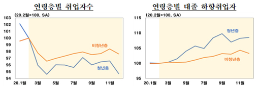 코로나19 팬데믹 이후 고용상황 악화는 청년층에서 두드러졌다.