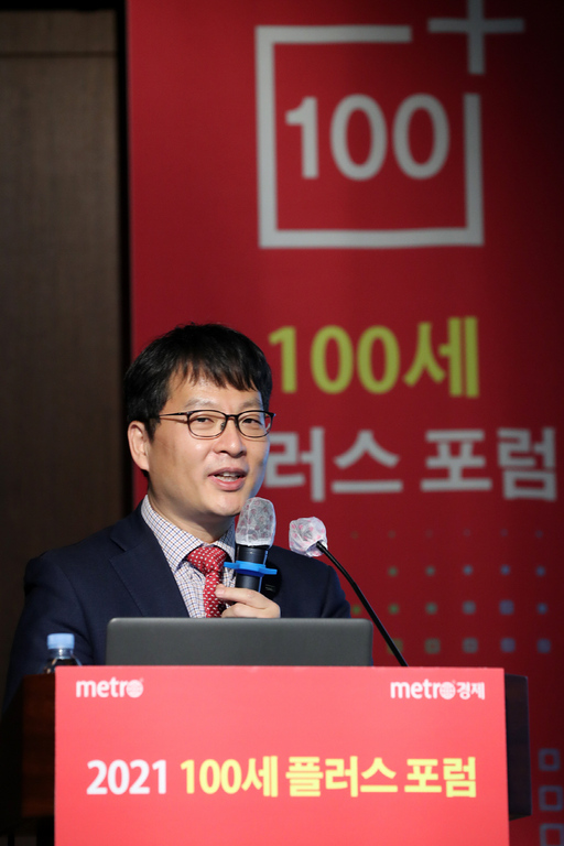 김동엽 미래에셋자산운용 상무는 17일 메트로경제 주최로 서울 명동 은행회관에서 열린 '2021 100세 플러스 포럼(시즌1)'에서 "올해는 주민등록 기준으로 1971년생이 만 50세에 접어들면서 3040보다 5060이 더 많아지기 시작했다"며 "국민연금, 퇴직연금, 개인연금 총 3층의 연금으로 노후를 준비해야 한다"고 강조했다.