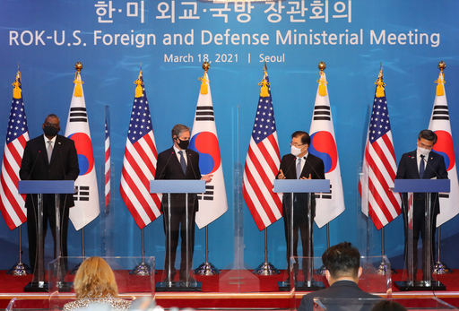 정의용 외교부·서욱 국방부 장관, 토니 블링컨 미국 국무·로이드 오스틴 미국 국방장관은 이날 서울 외교부 청사에서 열린 한미 외교·국방장관(2+2) 회담을 갖고 대북 현안 등에 대해 논의한 뒤 공동성명을 채택·발표했다.