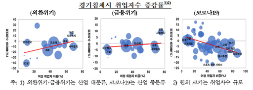 일반적으로 경기침체기에는 남성고용이 더 큰 충격을 받았다. 국제통화기금(IMF) 외환위기와 글로벌 금융위기 당시에도 남성 고용률이 더 크게 하락하고, 남성 실업률이 더 큰 폭으로 상승했다. 코로나19 이후 여성고용 악화는 일반적인 경기침체기와 비교할 경우 다소 이례적인 현상이다.