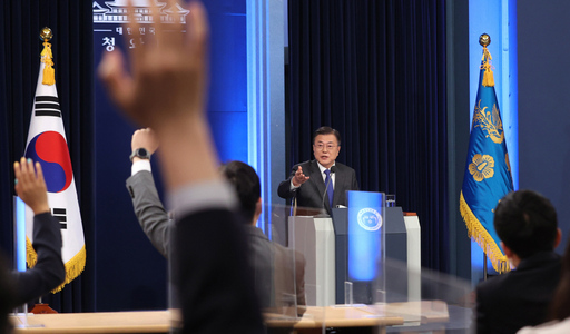 한편 문 대통령은 이날 질의응답에서 최근 윤석열 전 검찰총장이 야권의 유력한 차기 대선 주자로 거론되는 것과 관련 "제가 아무 말도 하지 않는 것이 바람직할 것 같다"고 말하기도 했다.
