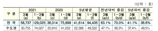 1~3월 주택 착공실적 전년보다 70% ↑ '수요 증가'