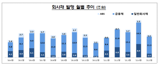 금감원 관계자는 "연초 금리상승에 대비해 선제적인 자금조달로 기업의 발행수요가 줄어든 가운데 1분기 실적발표 등 계절적 요인이 더해지면서 일반회사채를 중심으로줄었다"고 설명했다.
