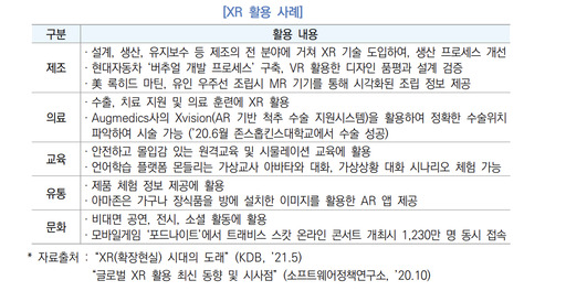 'XR(eXtended Reality)'로도 불리는 가상융합기술은 가상현실(VR), 증강현실(AR), 혼합현실(MR) 등을 포괄하는 기술을 말한다. XR은 수요가 꾸준히 증가하고 있고 현실과 가상이 융합된 차세대 플랫폼인 메타버스 산업이 급성장하고 있는 추세다. 제페토, 로블록스 등이 대표적이다.