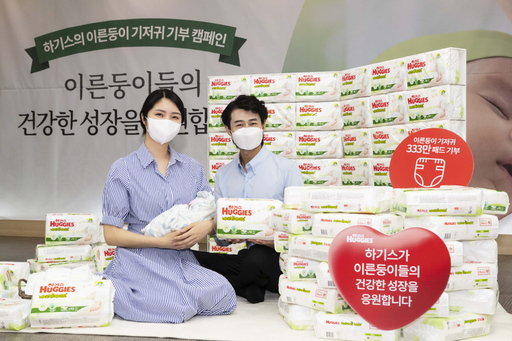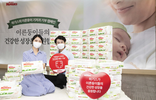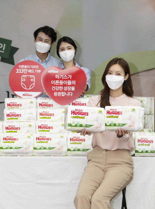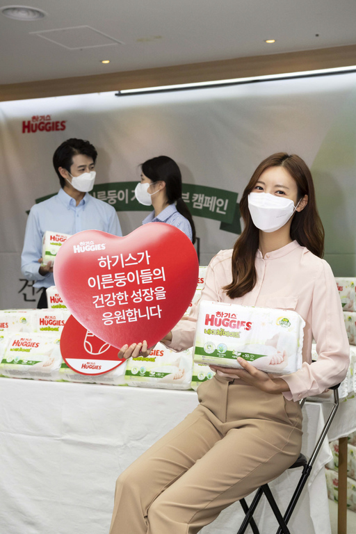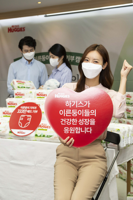 유한킴벌리 하기스가 24일 서울 중구 충무로 한국의 집에서 사회공헌 활동의 일환으로 이른둥이용 초소형 기저귀를 무상제공하는 '한 뼘 더 사랑해' 캠페인을 알리고 있다.