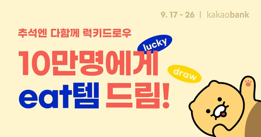 카카오뱅크는 오는 26일까지 카카오뱅크 계좌를 보유하고 있거나 카카오뱅크 서비스를 이용하는 고객을 대상으로 '추석엔 럭키드로우 이벤트'를 진행한다.