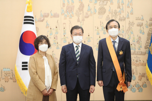 이 밖에 이 전 대법관 훈장 수여 및 오 전 대법관 임명장 수여에 함께한 김명수 대법원장은 환담에서 "대법관은 다뤄야 하는 사건의 양도 많지만, 최종심으로 부담감이 크다"며 오 대법관 임명장 수여가 문재인 정부 마지막이라는 점을 상기했다.