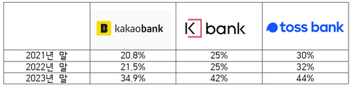앞서 인터넷은행은 금융당국에 중금리대출 비중 확대계획을 제출한 바 있다. 카카오뱅크는 올해까지 전체 신용대출 중 20.8%를 중저신용자 신용대출에 공급하기로 했다. 케이뱅크와 토스뱅크는 각각 21.5%, 34.9% 수준이다. 대출총액이 제한된 상태에서 부실률이 높은 중저신용자의 대출공급을 확대할 경우 은행의 건전성까지 해칠 수 있다는 설명이다.
