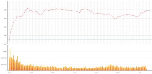 코스닥은 전 거래일보다 13.32(1.42%)포인트 오른 953.47에 장을 마쳤다.