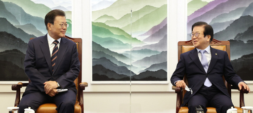 문재인 대통령은 25일 박병석 국회의장을 비롯한 국회의장단과 주요 정당 대표들과 만난 가운데 "정부가 필요로 하는 뒷받침을 국회가 아주 충실히 해 주셨다는 생각"이라며 "다시 한번 깊이 감사드린다"고 말했다. 남은 임기 6개월여 앞두고 마지막 시정연설인 만큼 문 대통령이 국회에 감사를 표한 것이다.